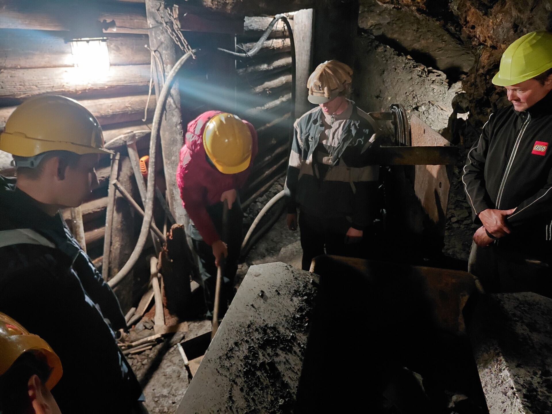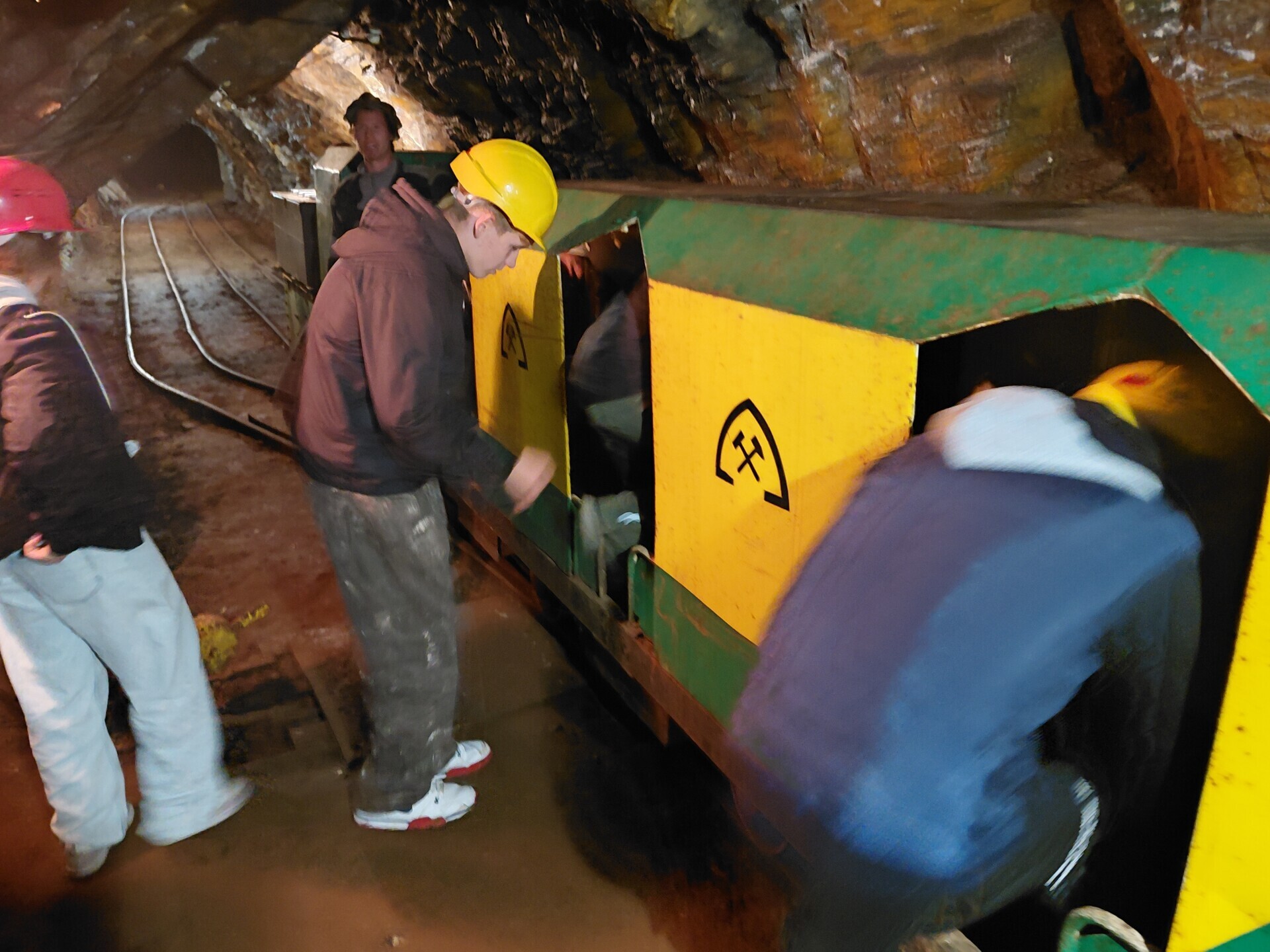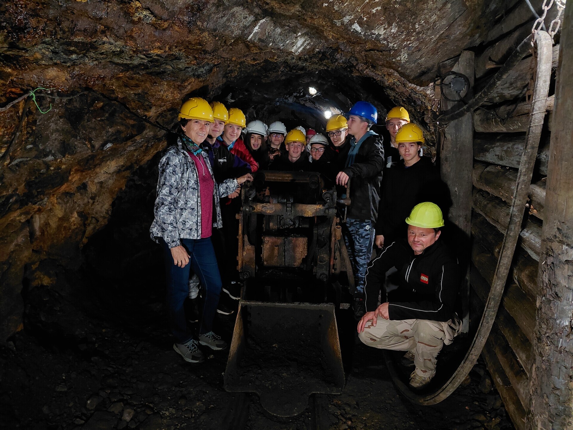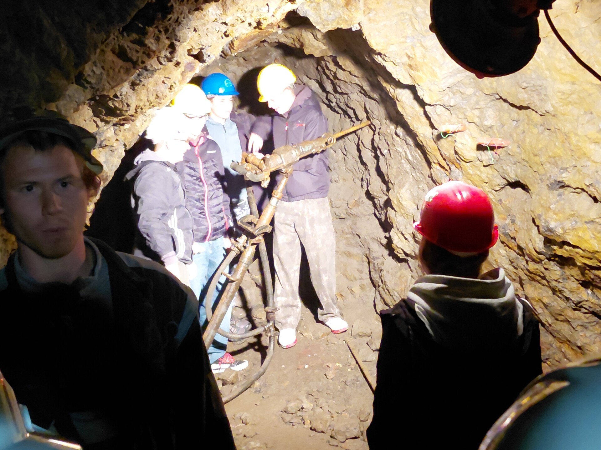Již koncem září jsme se vydali s žáky 9.A na geologickou exkurzi co Českého krasu. Nezajímaly nás však tentokrát vápence typické pro tuto CHKO, ale Chrustenická šachta, ve které se v minulém století těžila železná ruda. Protože se lokalita nachází u Loděnice u Berouna, zvolili jsme cestu vlakem. Od průvodce, který nás šachtou provázel, jsme se dozvěděli mnoho zajímavého o těžbě (šachta má 84 pater, většina je dnes zatopena). My se pohybovali po 7. a 8. patře pod zemí. Strávili jsme tu jeden a půl hodiny. Deváťáci si potěžkali pneumatické kladivo, viděli, jak se s ním těžilo. Dozvěděli se o životě koní v šachtě, prolezli štolou po žebříku, svezli se v důlních vagónech...