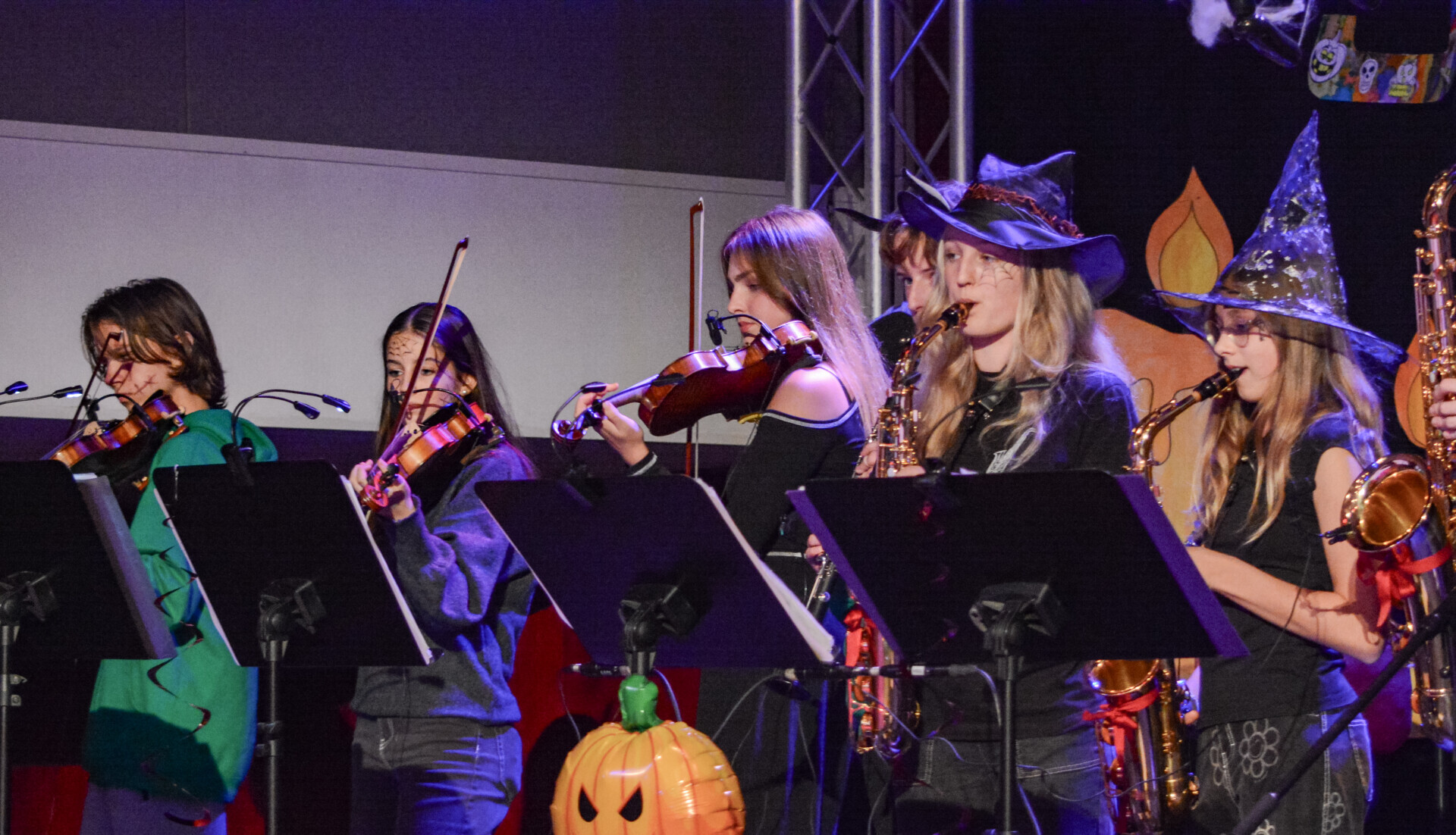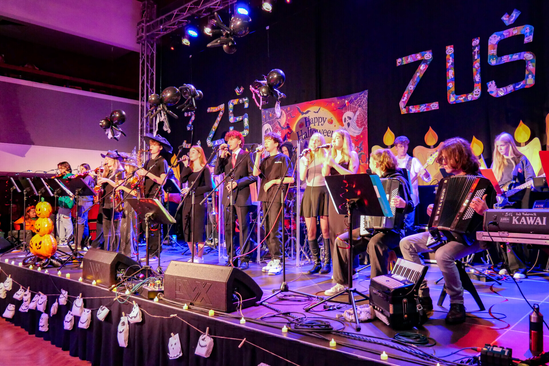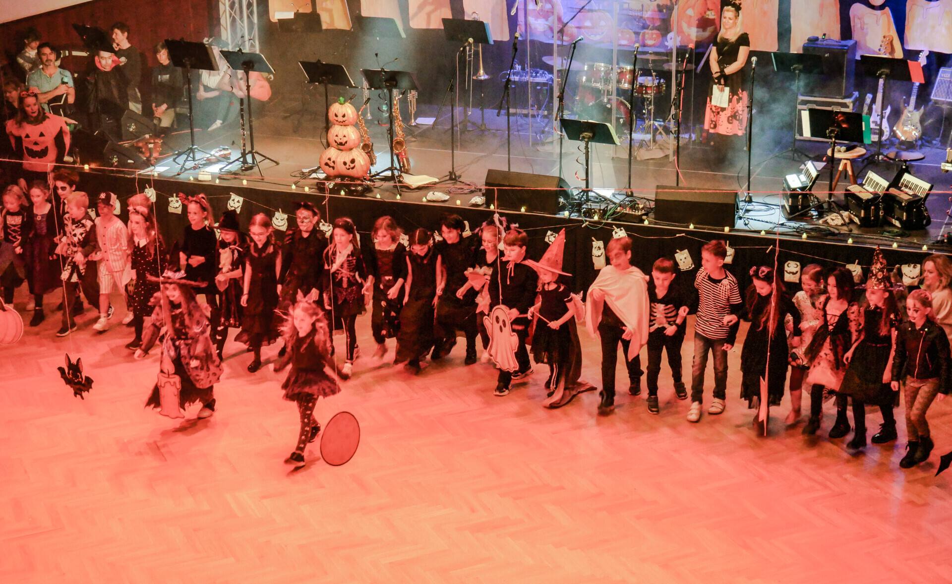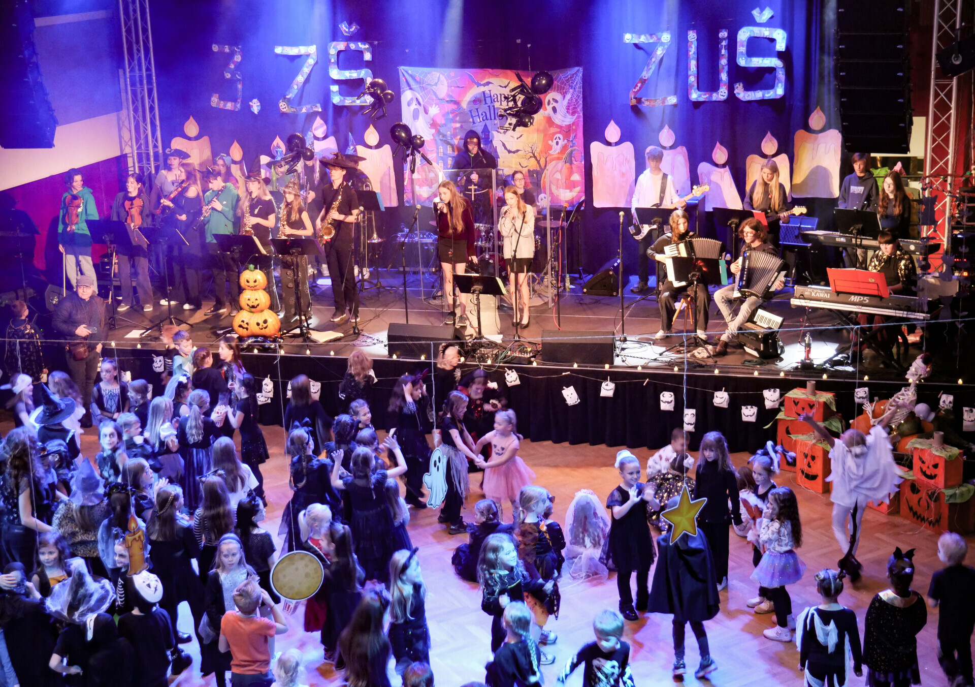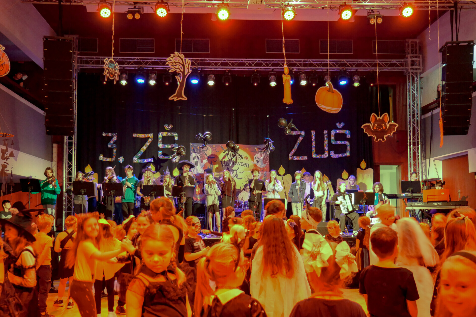 O zábavu se postarali naši šikovní žáci svými krásnými vystoupeními a nechyběla ani kapela The Small People, která rozproudila celý sál. Pobavili také malí kostlivci z MŠ Průběžná, a velký úspěch sklidil taneček dýně Olivie.