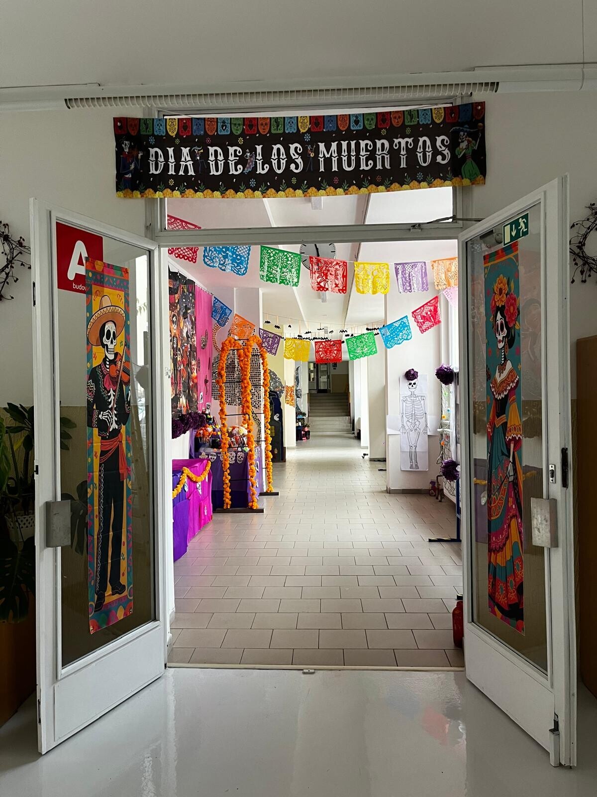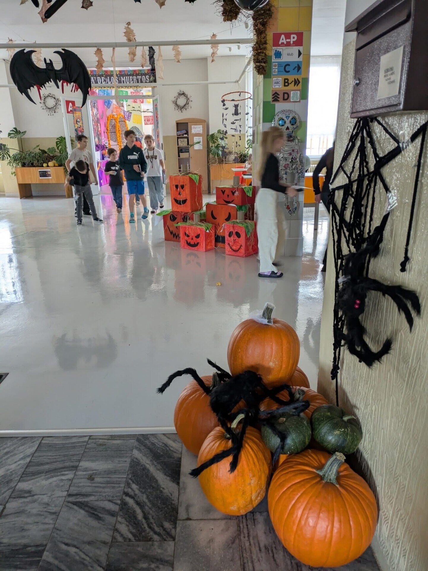 Ve vestibulu a na chodbách školy vznikla barevná výstava s ukázkami zvyků, obrázků a prací dětí. Nechyběly zábavné úkoly, křížovky, pexesa ani stezka s otázkami, díky nimž se žáci dozvěděli, jak se například v Mexiku slaví Día de los Muertos, jak v Británii a USA probíhá Halloween, nebo jaké tradice patří k našim Dušičkám a jejich obdobám, Allerseelen, v sousedním Německu.
